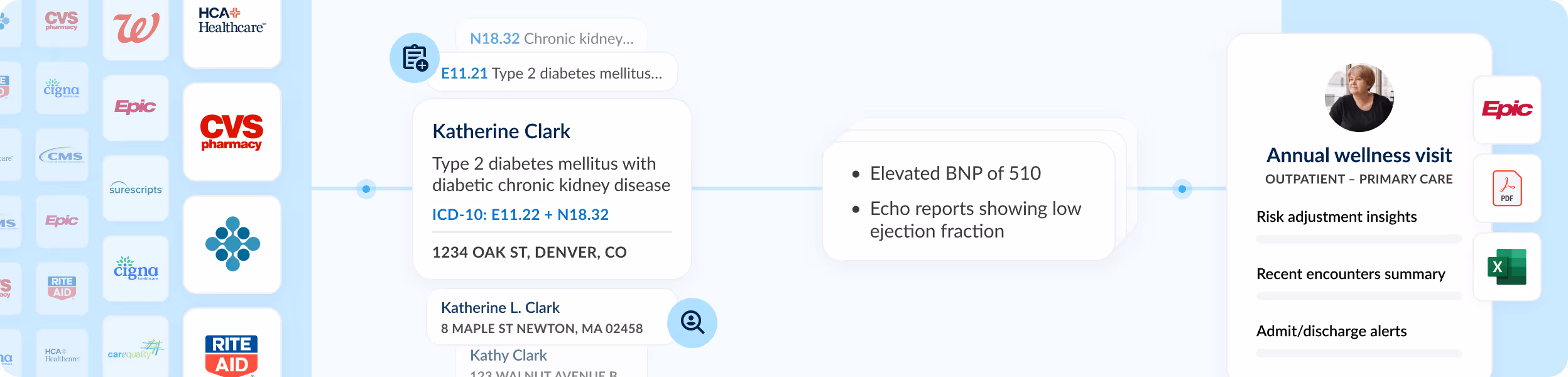 A record with insights specific to why you are seeing the patient, auto-matched to the patient chart with a unified, longitudinal record as back-up. Quick to implement in your EHR.