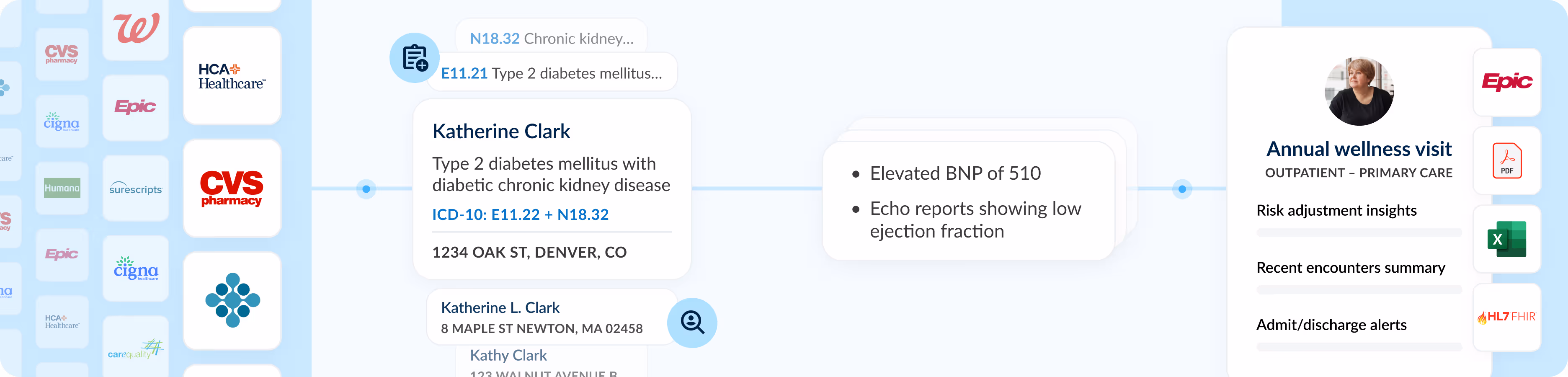 A record with insights specific to why you are seeing the patient, auto-matched to the patient chart with a unified, longitudinal record as back-up. Quick to implement in your EHR.